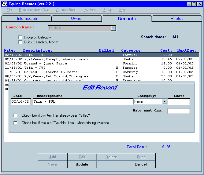 Order Equine Records for the PC: